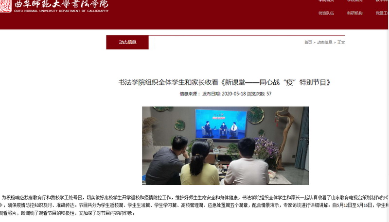 经过紧锣密鼓的筹备,《新课堂——同心战“疫”》高校复学规范培训特别节目如期提交山东省教育厅新冠肺炎疫情防控工作领导小组审核,领导小组审核通过后下发通知要求省内各高校组织学生、教师和家长认真收看。