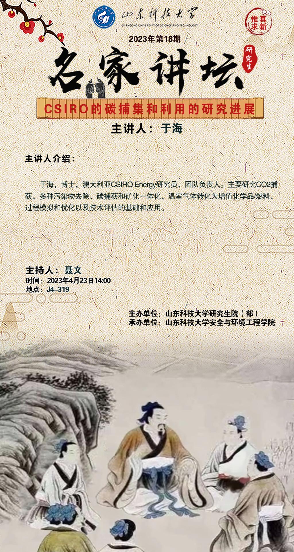 “名家讲坛”2023年第18期:CSIRO的碳捕集和利用的研究进展(总819期)
