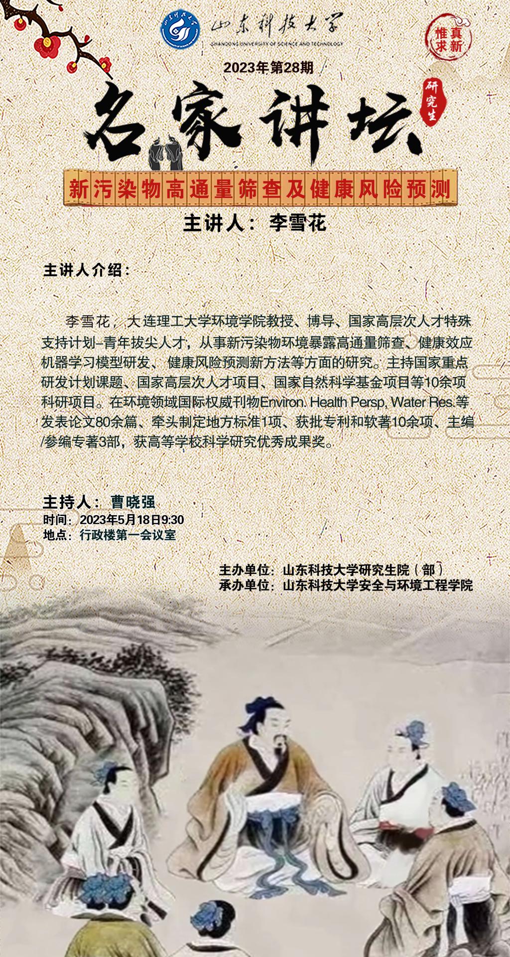 “名家讲坛”2023年第28期:新污染物高通量筛查及健康风险预测(总829期)
