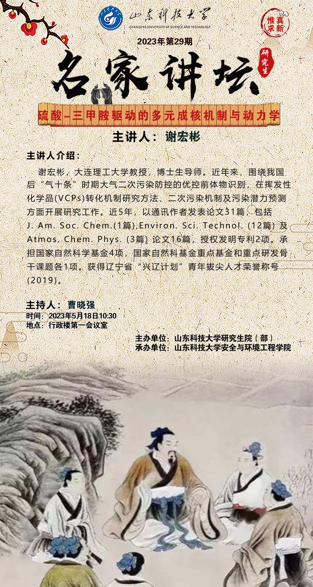 “名家讲坛”2023年第29期:硫酸——三甲胺驱动的多元成核机制与动力学(总830期)