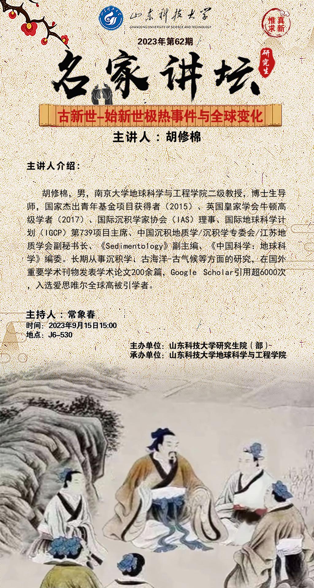 “名家讲坛”2023年第62期:古新世-始新世极热事件与全球变化(总863期)