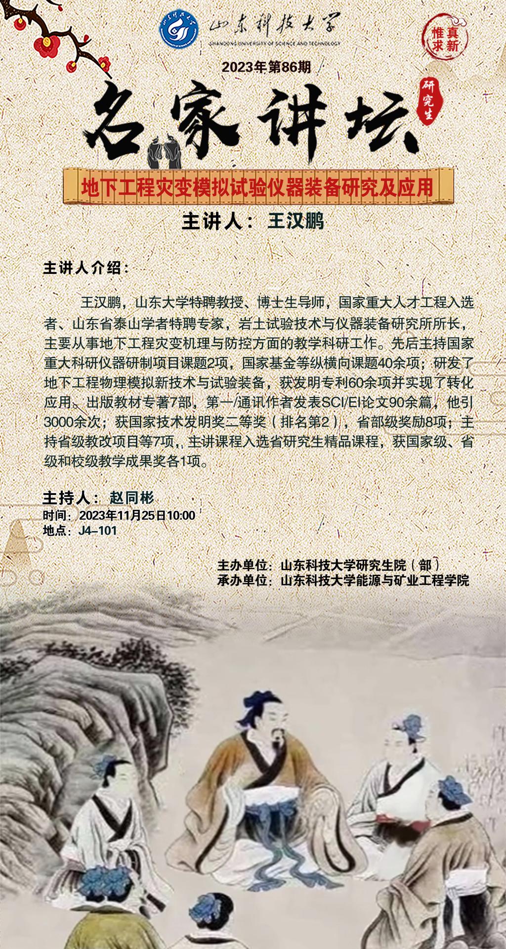 “名家讲坛”2023年第86期:地下工程灾变模拟试验仪器装备研究及应用(总887期)