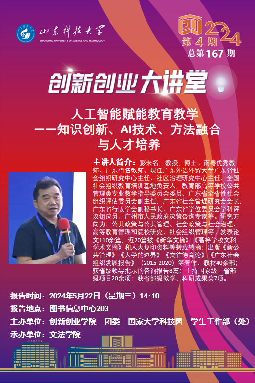 创新创业大讲堂2024年第4期:人工智能赋能教育教学——知识创新、AI技术、方法融合与人才培养