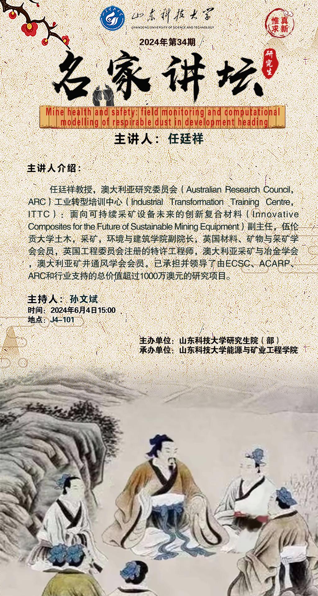 “名家讲坛”2024年第34期:Mine health and safety: field monitoring and computational modelling of respirable dust in development heading(总928期)