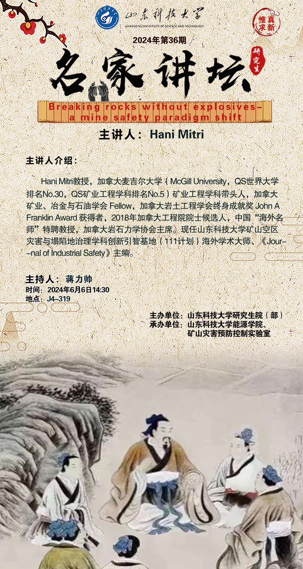“名家讲坛”2024年第36期:Breaking rocks without explosives – a mine safety paradigm shift(总930期)