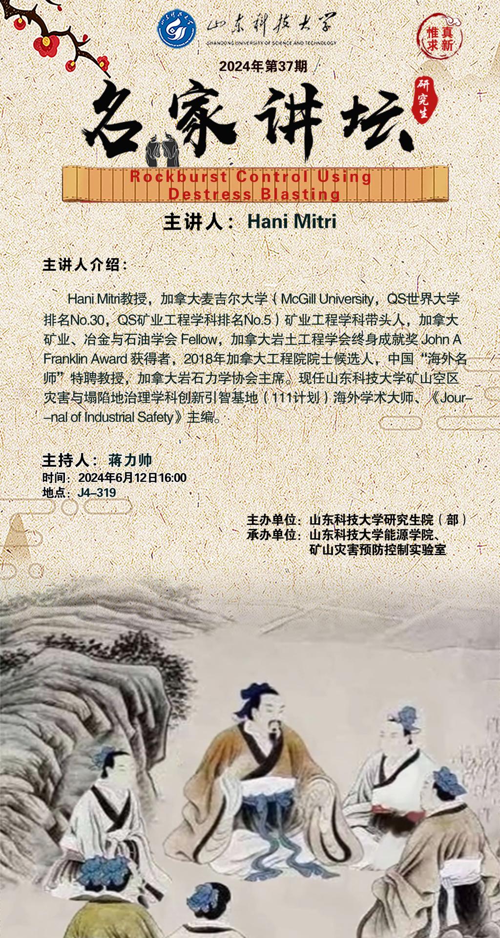 “名家讲坛”2024年第37期:Rockburst Control Using Destress Blasting(总931期)