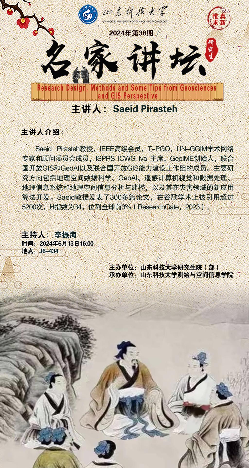 “名家讲坛”2024年第38期:Research Design, Methods and Some Tips from Geosciences and GIS Perspective(总932期)