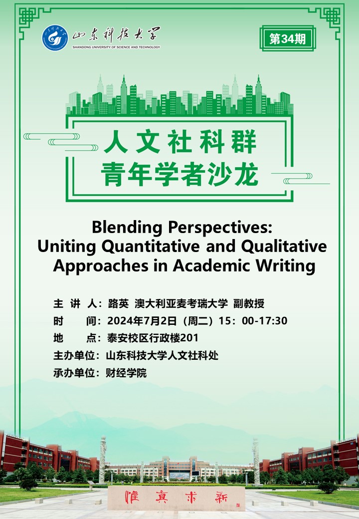 人文社科群青年学者沙龙(第34期):Blending Perspectives: Uniting Quantitative and Qualitative Approaches in Academic Writing