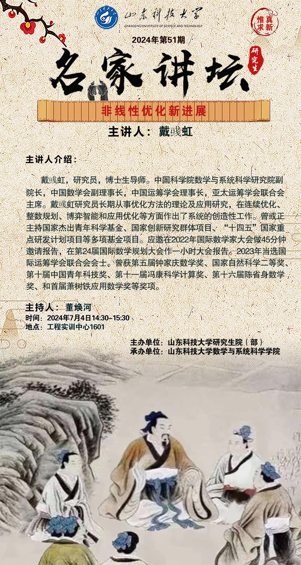 “名家讲坛”2024年第51期:非线性优化新进展(总945期)