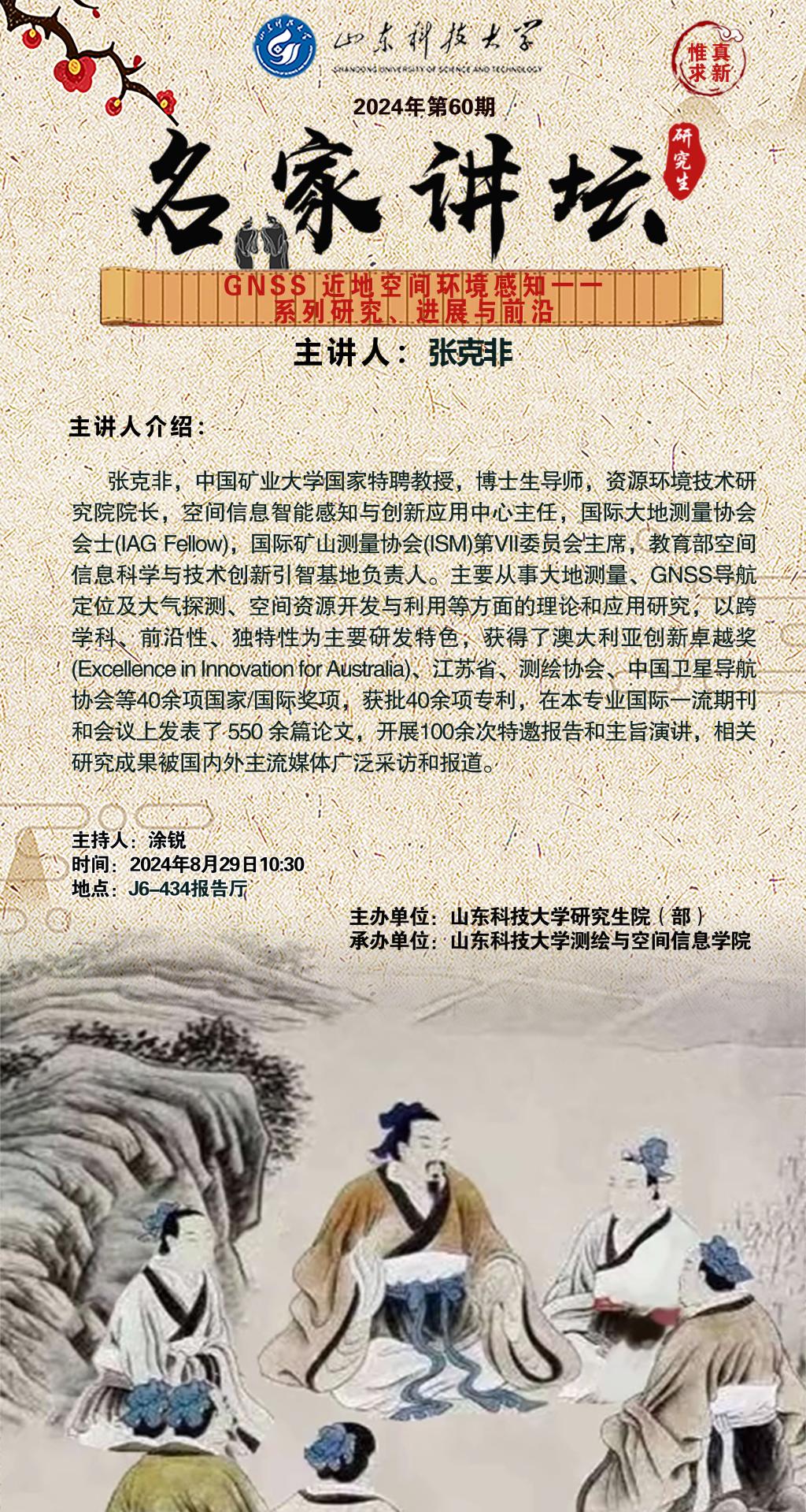 “名家讲坛”2024年第60期:GNSS 近地空间环境感知一一系列研究、进展与前沿(总954期)