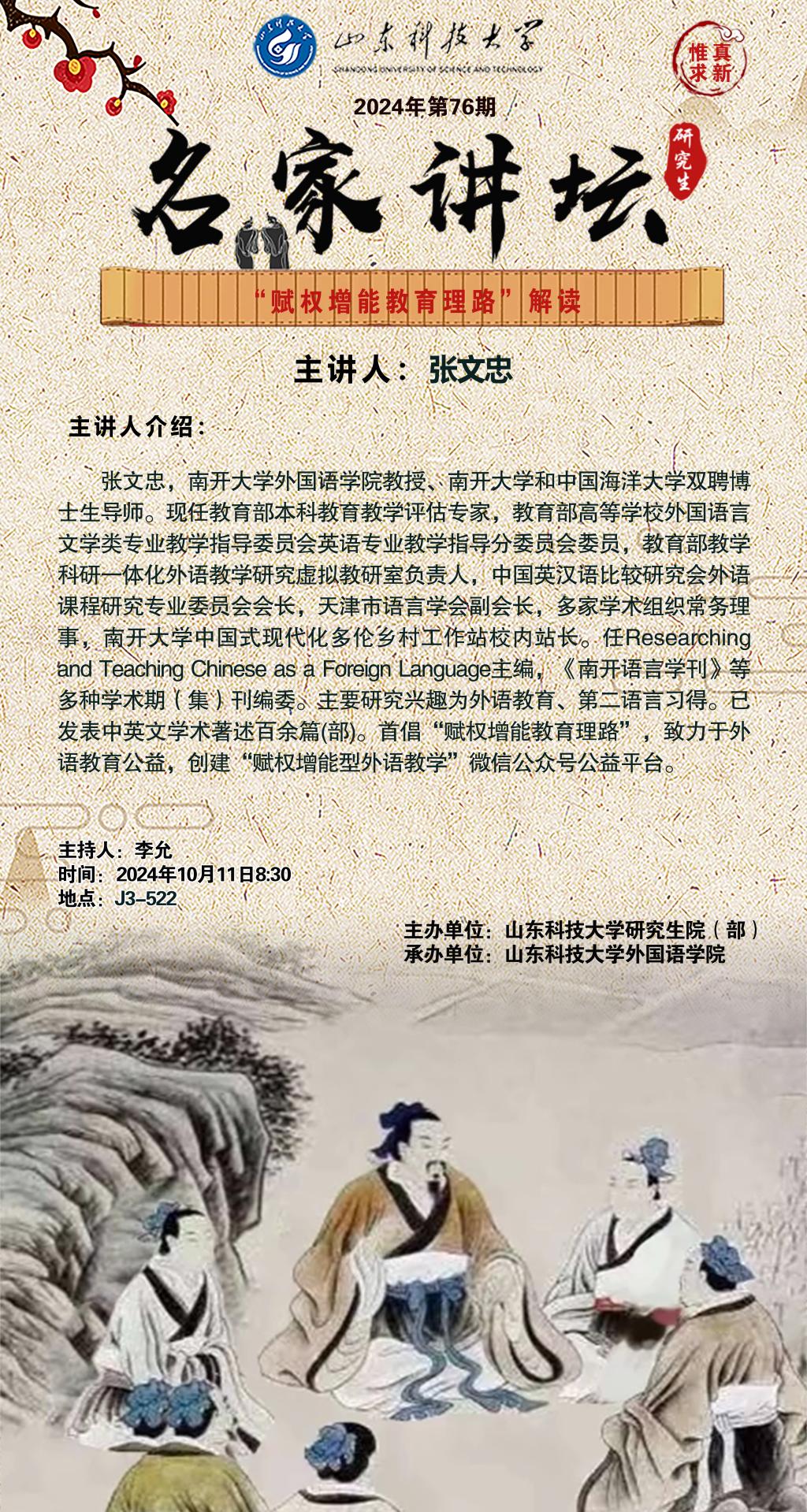 上一条:研究生“德育讲堂”第三期:高擎民族精神火炬,用音符谱写党和人民的赞歌