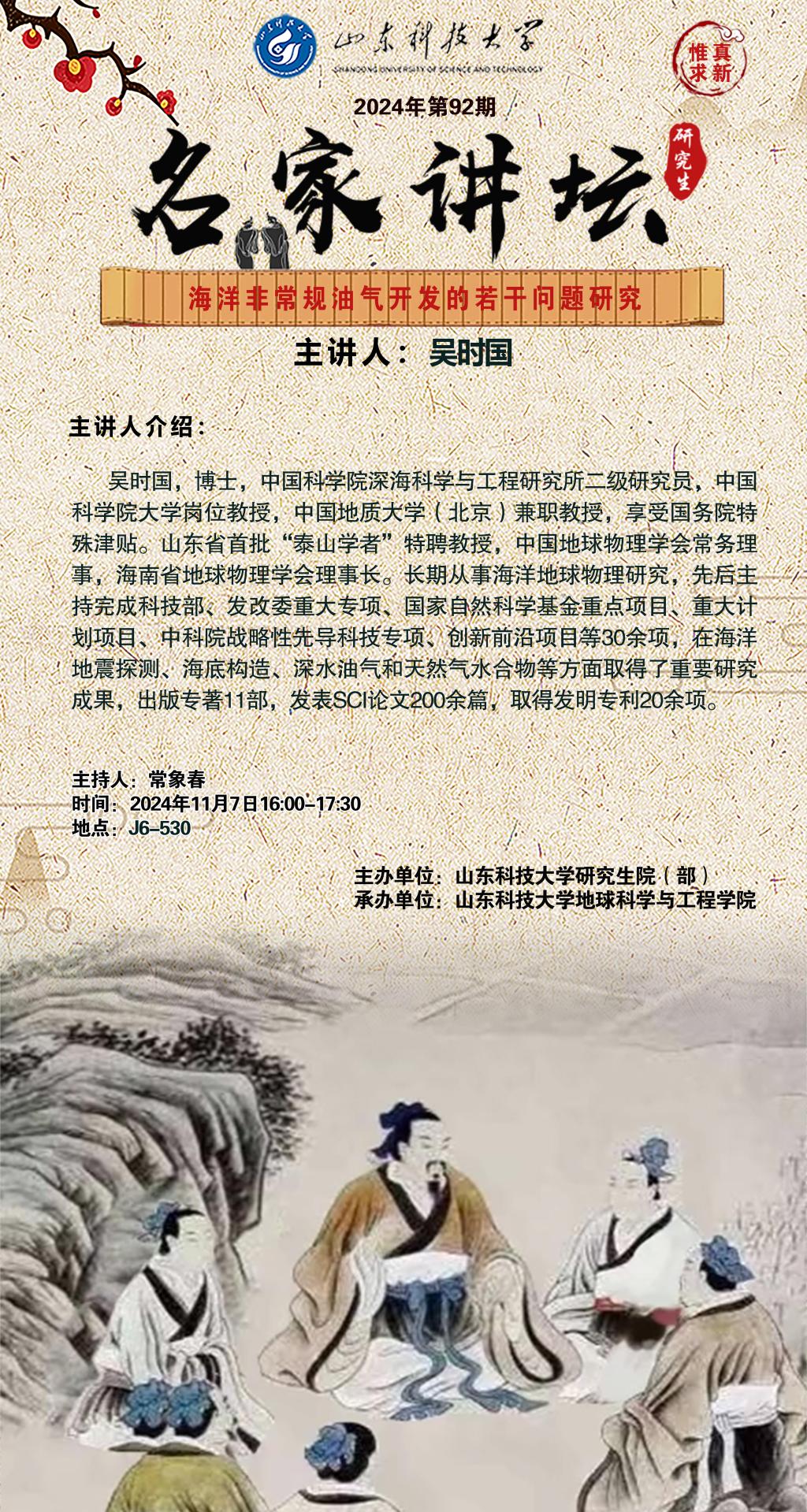 “名家讲坛”2024年第92期:海洋非常规油气开发的若干问题研究(总986期)